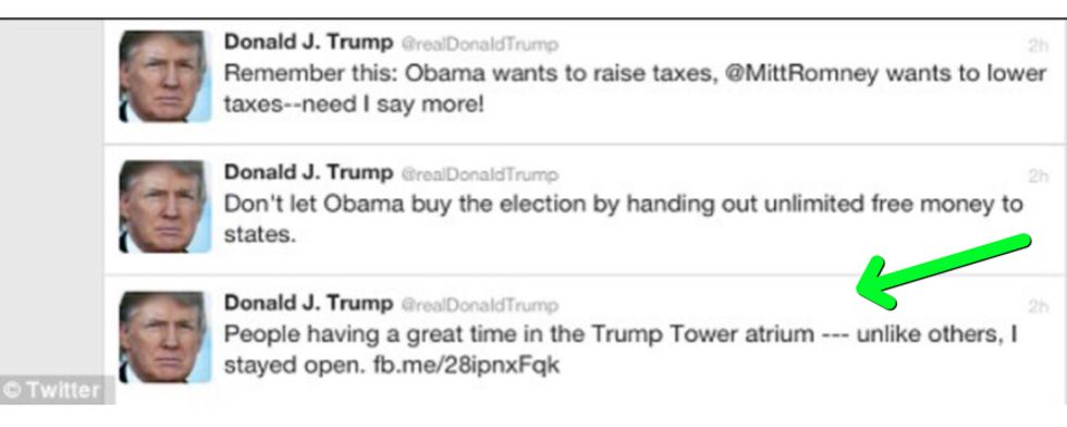 But wait, there's more. This tweet storm was captured by the Daily Mail, bonus points for Trump suggesting President Obama isn't a real president and the usual Trump [inappropriate] brag [about making money] even during a crisis: