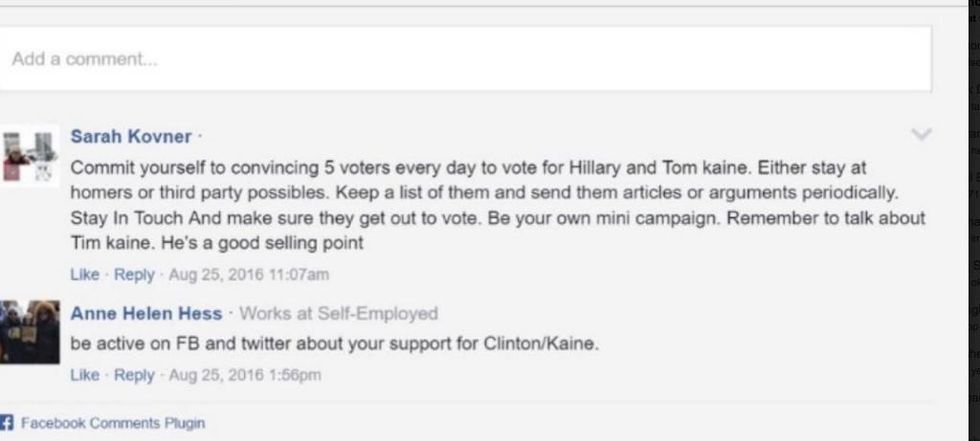 Knock – Click here to canvass door-to-door in your state. Sign up now to canvass on or before November 8. Your help is so important to ensure that each and every voter hears about Hillary's strength, courage, and commitment to the American people.5. Check with HillaryClinton.com for further opportunities to help. HillaryClinton.com/gotv - Our preferred volunteer link! RETWEET THIS. Hillary's Volunteer Page has all the details on dropping off treats, attending organizer meetings, hosting events, and so much more! SHARE ON FACEBOOK