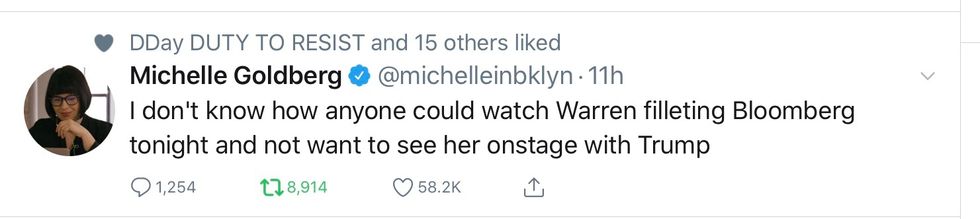 Warren then seized the mic. She took a mighty rhetorical swing at Blooomberg. And Lordy. She. Did. Not. Miss.