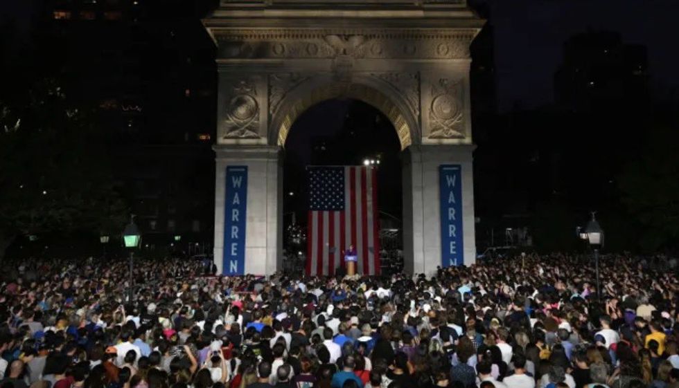 .@ewarren camp says at least 20,000 people attended her rally in Washington Square Park tonight.
