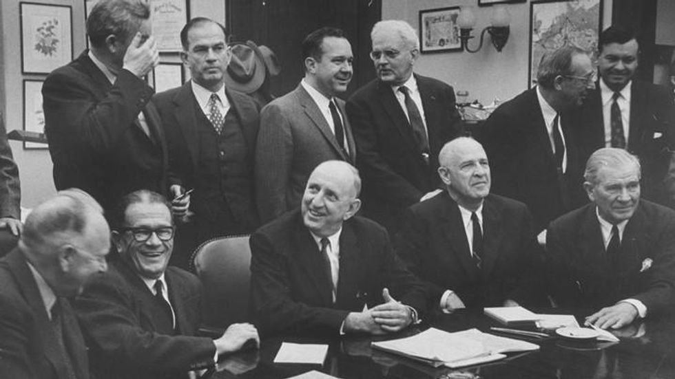 Filibusters were emblazoned in the public's mind in part by the 1939 film, "Mr. Smith Goes to Washington," in which Jimmy Stewart portrayed a senator who spoke on the chamber's floor until exhaustion. In a real-life version of that, Sen. Strom Thurmond, D-S.C., stood continuously by his desk for 24 hours and 18 minutes speaking against the 1957 Civil Rights Act, the longest Senate speech by a single senator for which there are records of speaking length.