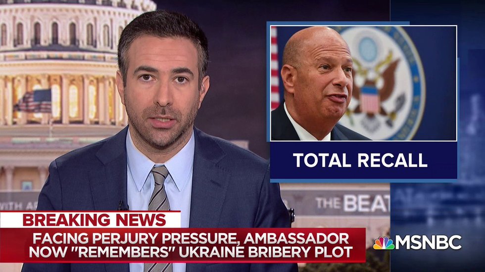 Facing perjury pressure, Ambassador Sondlond is now walking back and revising his past testimony that was more friendly to Trump, with new testimony that says some version of 'I now recall' eight times.