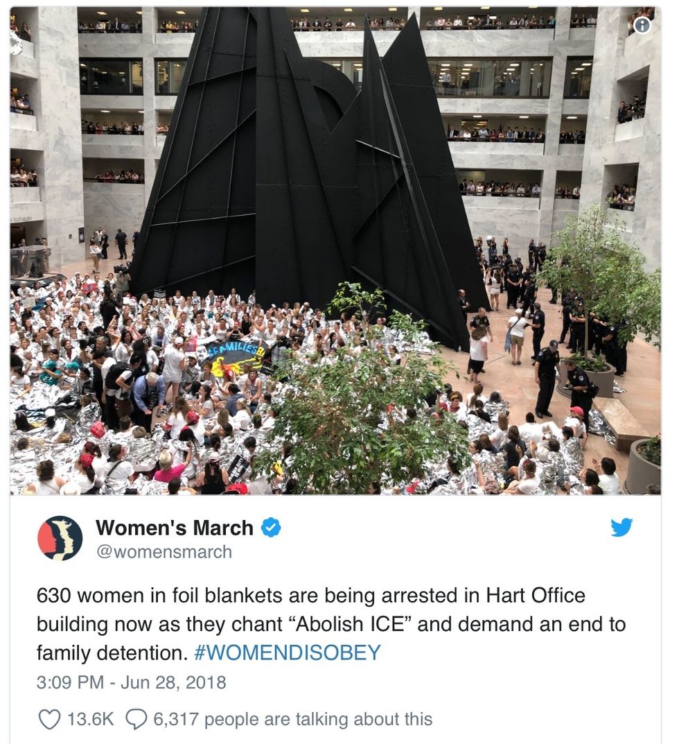 About 600 women were arrested on Thursday during a nonviolent civil disobedience action organized by the Women's March. Hundreds of protesters took over a Senate office building to call for the abolition of ICE and the end of family separation and detention.