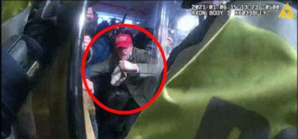 Charging documents filed Tuesday in federal district court in Washington, D.C., accuse Klein of taking part in one of the day's most violent interactions between authorities and the mob seeking entrance at the Lower West Terrace of the Capitol building. Investigators said law enforcement body-worn cameras purportedly captured Klein as he "violently shoved a riot shield that apparently had been taken from an officer, towards the officers trying to stop the mob from gaining access to the building."