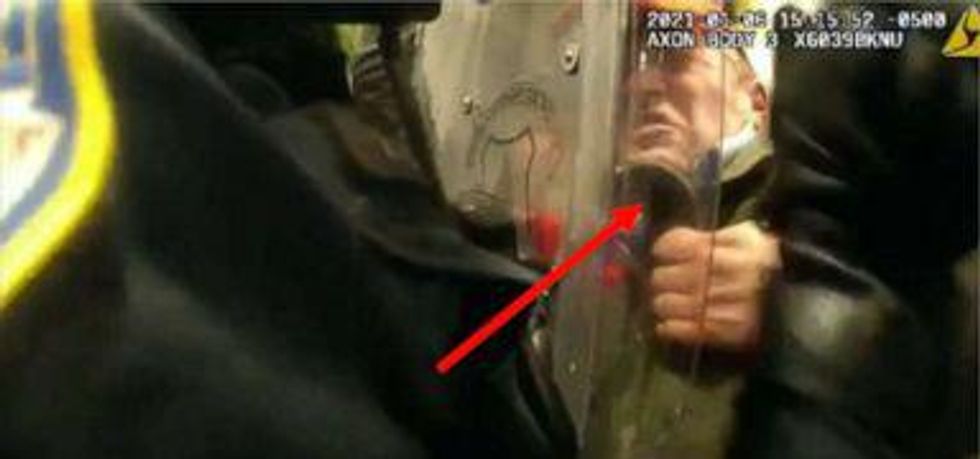 Investigators said Klein allegedly "pushed the riot shield in between the doors to the Capitol, preventing officers from closing the doors," according to the court documents.