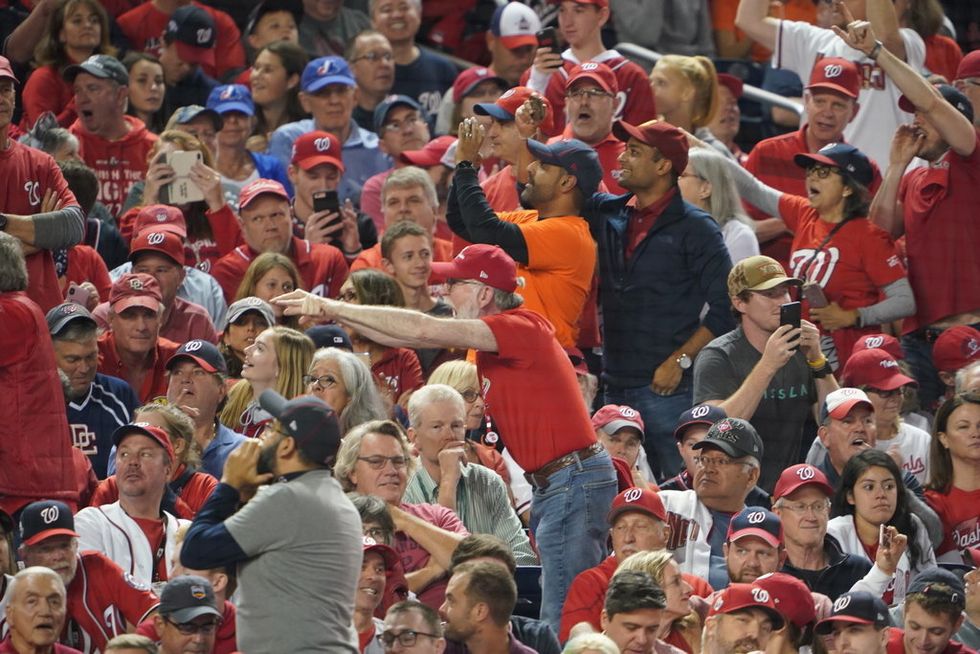 The president was given one of the Washington Suites on the first level of Nationals Park to the left of home plate, and he sat between his wife, Melania Trump, and Senator David Perdue of Georgia. He gave no indication of whether he was rooting for the Nationals or Astros, neither offering any particular reaction when Carlos Correa hit a two-run homer to put Houston up 4-0 over the home team nor joining in the "baby shark" cheers favored by Washington fans.
