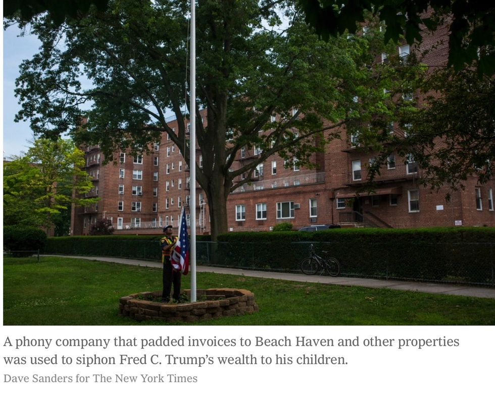 As it turned out, a hidden scam lurked behind the mysterious increases. In October, a New York Times investigation into the origins of Mr. Trump's wealth revealed, among its findings, that the future president and his siblings set up a phony business to pad the cost of nearly everything their father, the legendary builder Fred C. Trump, purchased for his buildings. The Trump children split that extra money.