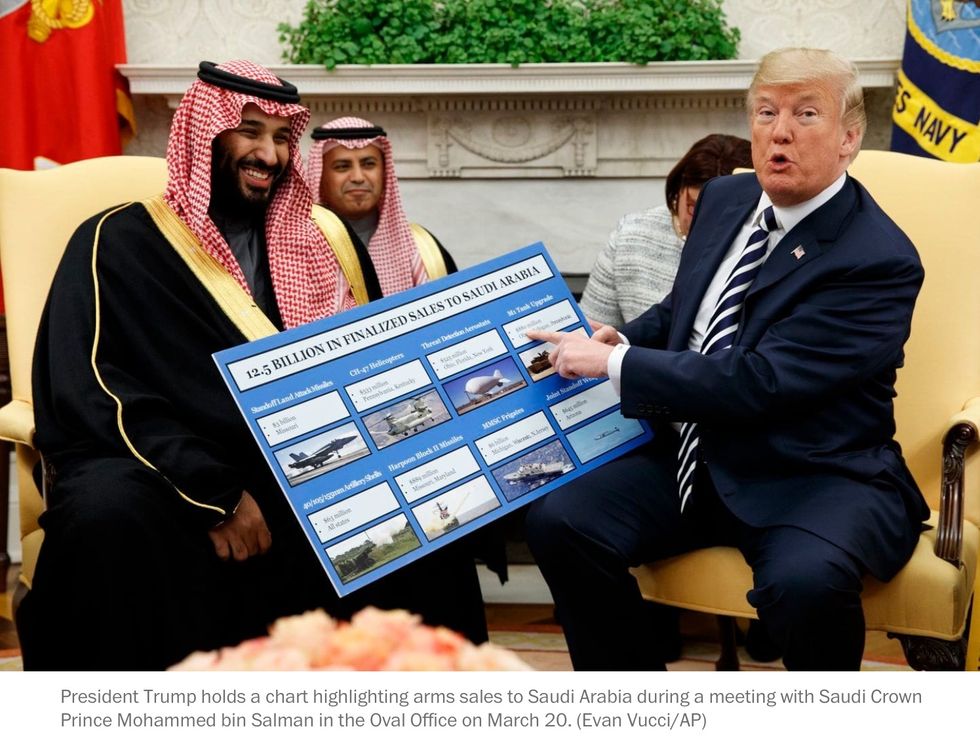 In a bizarre, inaccurate and rambling statement — one offering a good reminder why Twitter has character limits — President Trump whitewashed the Saudi government's brutal murder of journalist Jamal Khashoggi. In the process, the president maligned a good and innocent man, tarring Khashoggi as an "enemy of the state" — a label the Saudis themselves have not used publicly — while proclaiming to the world that Trump's relationship with Saudi Arabia's 33-year-old crown prince was too important to risk over the murder of a journalist. Whatever objections people may have to our turning a blind eye to Khashoggi's assassination, the president argued, they do not outweigh the (grossly inflated) revenue we can expect from U.S.-Saudi arms deals.