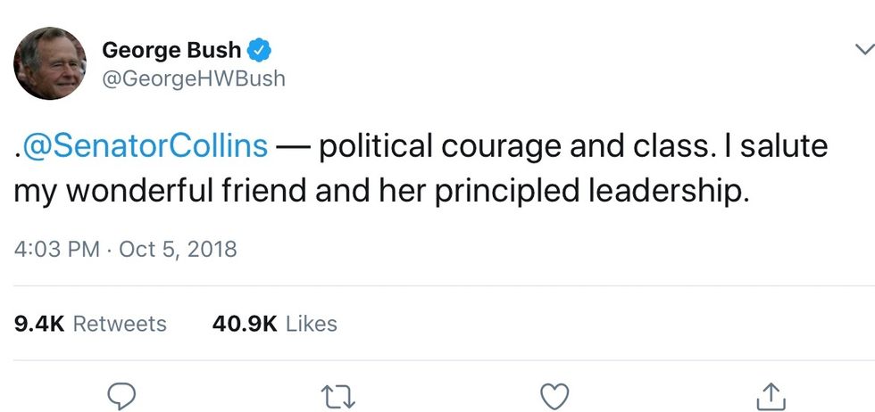 Here is CNN today: George W. Bush made calls reassuring Collins about Kavanaugh
