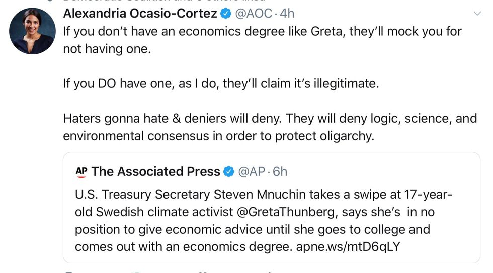 "After she goes and studies economics in college she can come back and explain that to us," Mnuchin said.