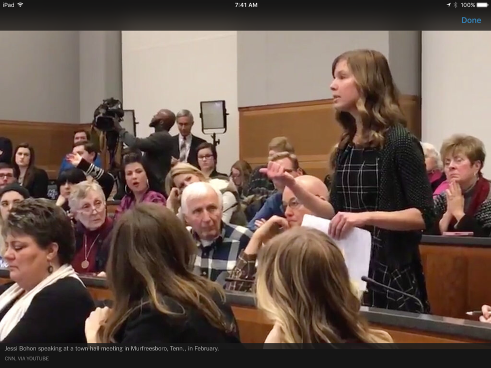 On Feb. 9, Bohon went to one in Murfreesboro, Tenn. There, she asked her House representative, Diane Black, to fix Obamacare's problems instead of taking away insurance. "As a Christian, my whole philosophy in life is pull up the unfortunate," Bohon told Black. "We are effectively punishing our sickest people." The remarks went viral.