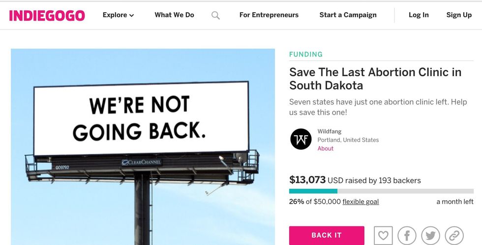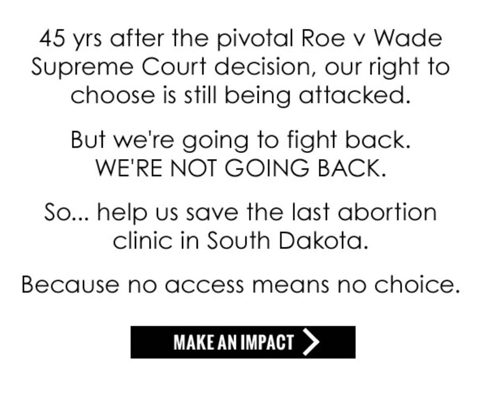 If you want to support the Wildfang campaign, here is the link. https://www.indiegogo.com/projects/save-the-last-abortion-clinic-in-south-dakota?utm_source=WILDFANG+Newsletter&utm_campaign=56f6e8c65c-2018_01_21_roevwade_engaged_2018_01_21&utm_medium=email&utm_term=0_da2924d12d-56f6e8c65c-53437981&goal=0_da2924d12d-56f6e8c65c-53437981&mc_cid=56f6e8c65c&mc_eid=982f8e3909#/