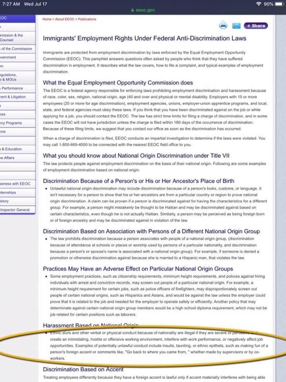 2. This is from the EEOC website. It is against Federal Law to harass someone, saying they should go back to their own country.