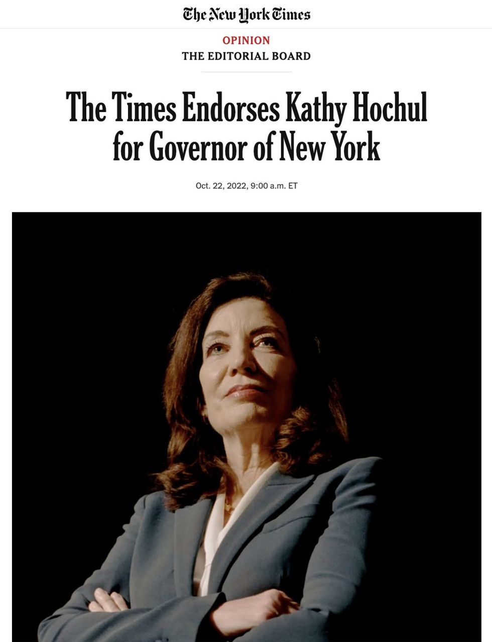Honored to earn the endorsement of the @nytimes as we continue finding solutions to big problems and building a stronger state for all New Yorkers. https://t.co/nGIvsEDUa4