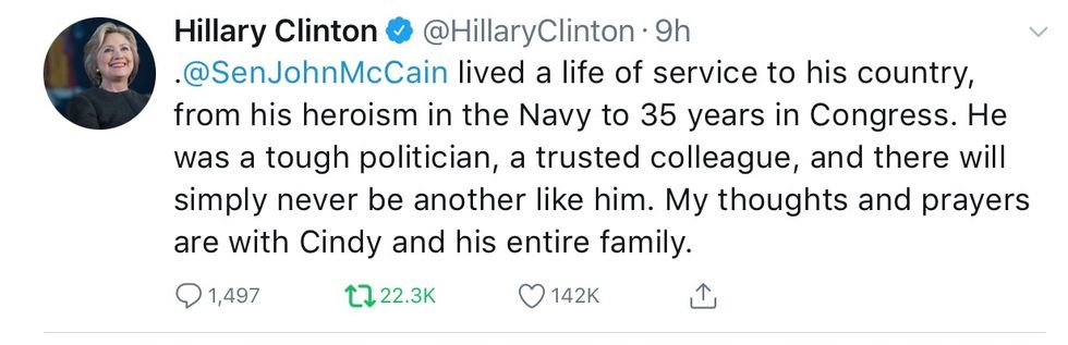 "My deepest sympathies and respect go out to the family of Senator John McCain," Mr. Trump wrote. "Our hearts and prayers are with you!"