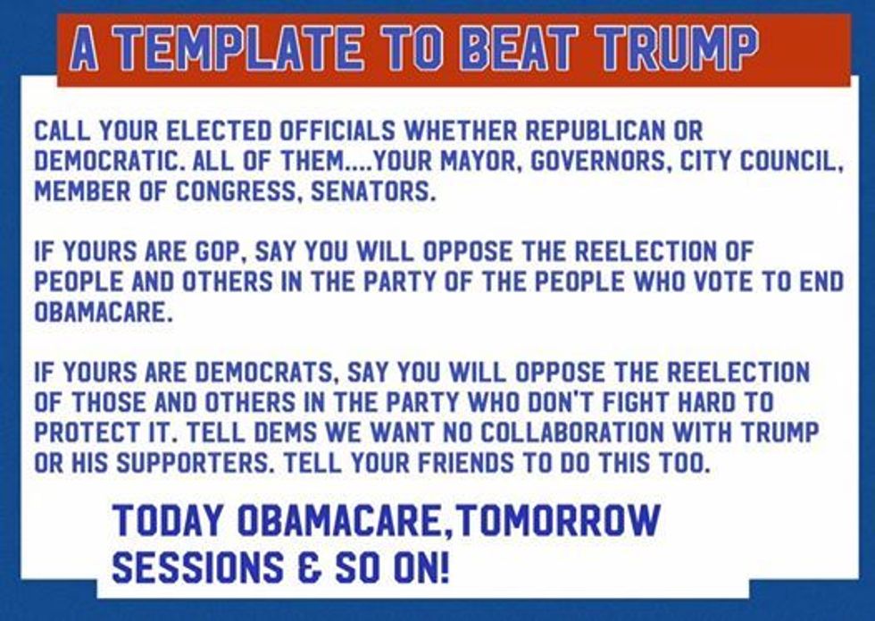Addendum. We all felt our collective power yesterday as the House GOP backed down. We are the Anti-T Party and just as the Tea Party stopped Obama, we can stop Trump. This is a template for Victory, after Victory.