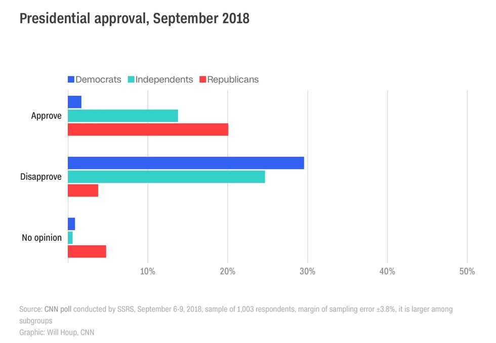 If you take CNN's approval rating number and party identification and break it up into segments of the total population, only 20% of the US population over the age of 18 are Republicans who approve of Trump.