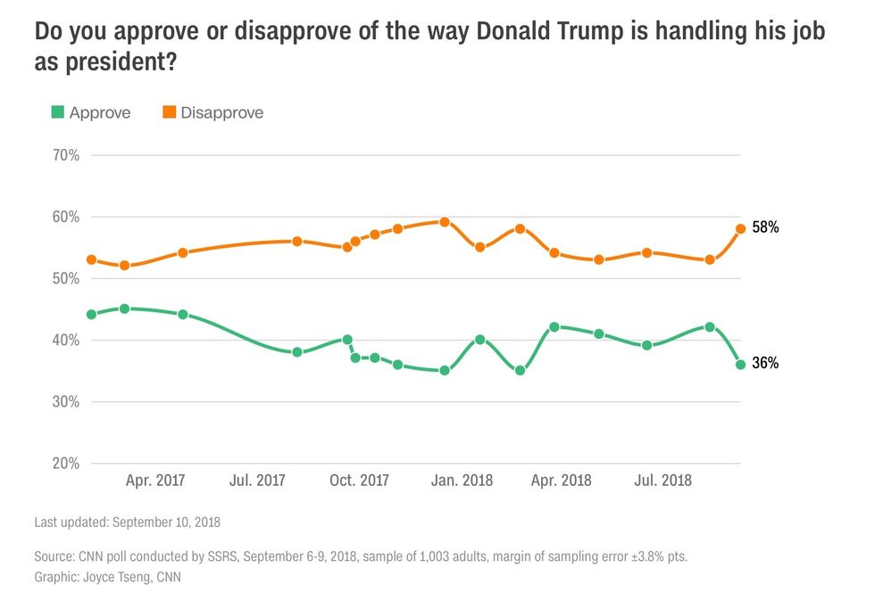 (CNN) Midterms are a base election, but how big is Trump's base? We all know he brags about being the most popular president in the Republican Party (more popular than Abraham Lincoln, he says!). In the most recent CNN poll conducted by SSRS, the President's approval rating was 36%, which is not a record low, but not very good either.