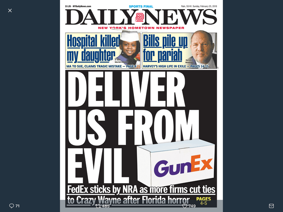 1. Keep calling FedEx. 469.980.3000 Tell them they and their retail arm, Kinko, won't have your business unless they drop their NRA sponsorship and discounts.