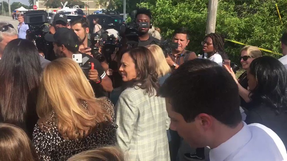 I am so proud to be a Democrat. @KamalaHarris, @SenGillibrand and @PeteButtigieg are arm-in-arm, the morning after a debate, to shine a light on the injustices happening at the Homestead private detention center. What’s happening here is wrong. https://t.co/0rRnnRNEG2