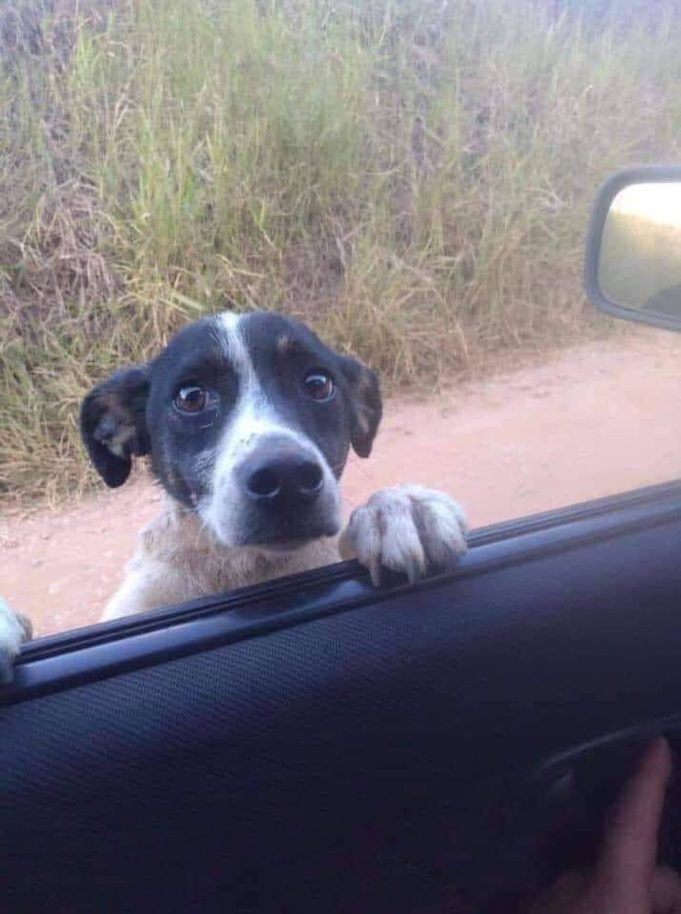I saw a dog on the side of the road. As soon as he saw the car he got up and started barking... I stopped and saw those eyes..