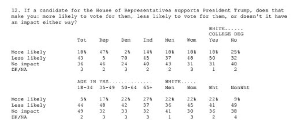 If a candidate for the House supports Trump, would that make you more or less likely to vote for them? More 18 Less 43 —@QuinnipiacPoll https://t.co/k6CaO9XZG8