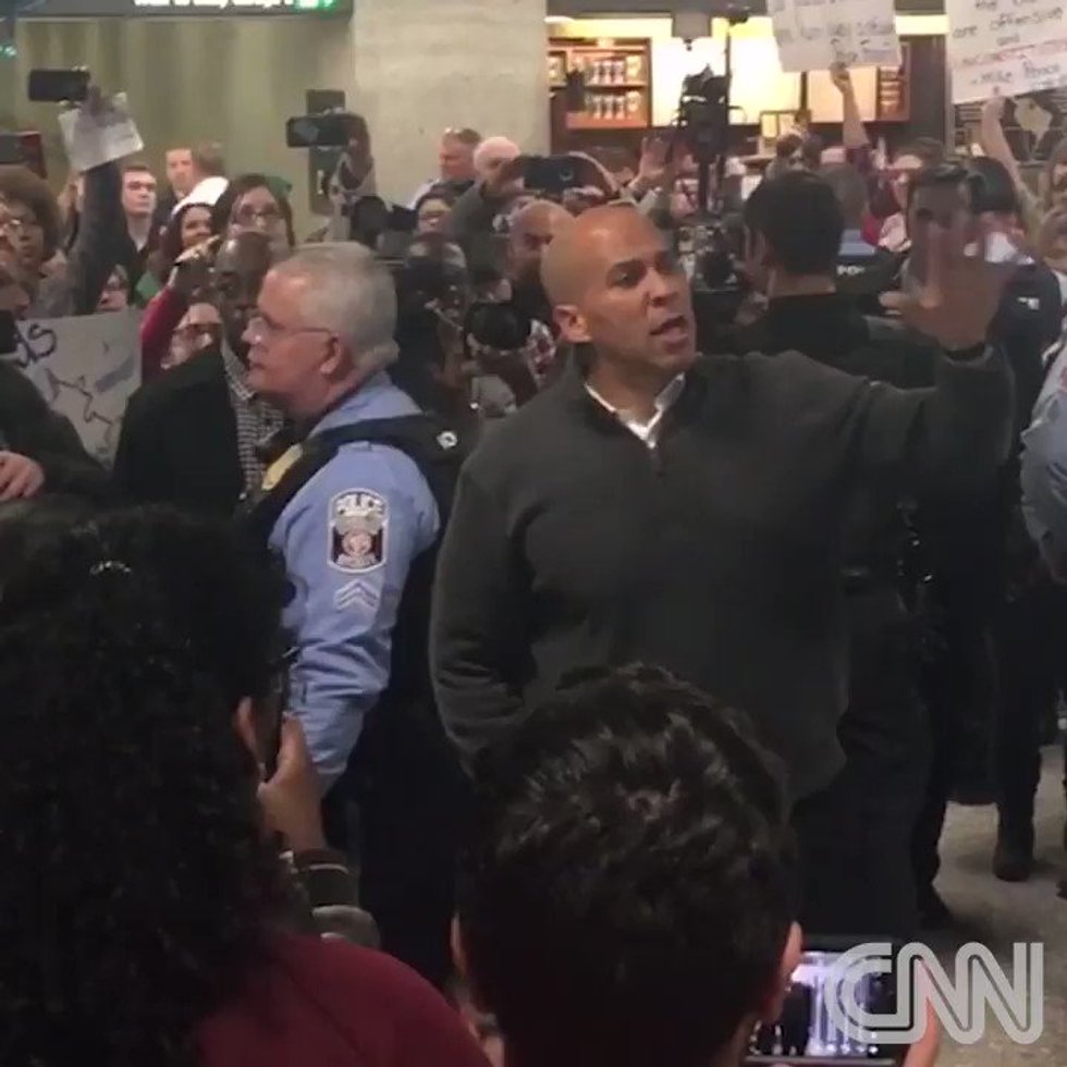 In an impassioned speech to protesters on Saturday night, Sen. Cory Booker described President Trump's travel ban as “a crime and a sin” https://t.co/XD1u2j9jXm