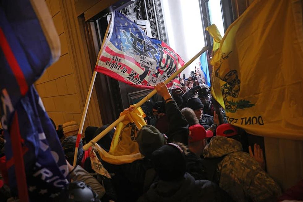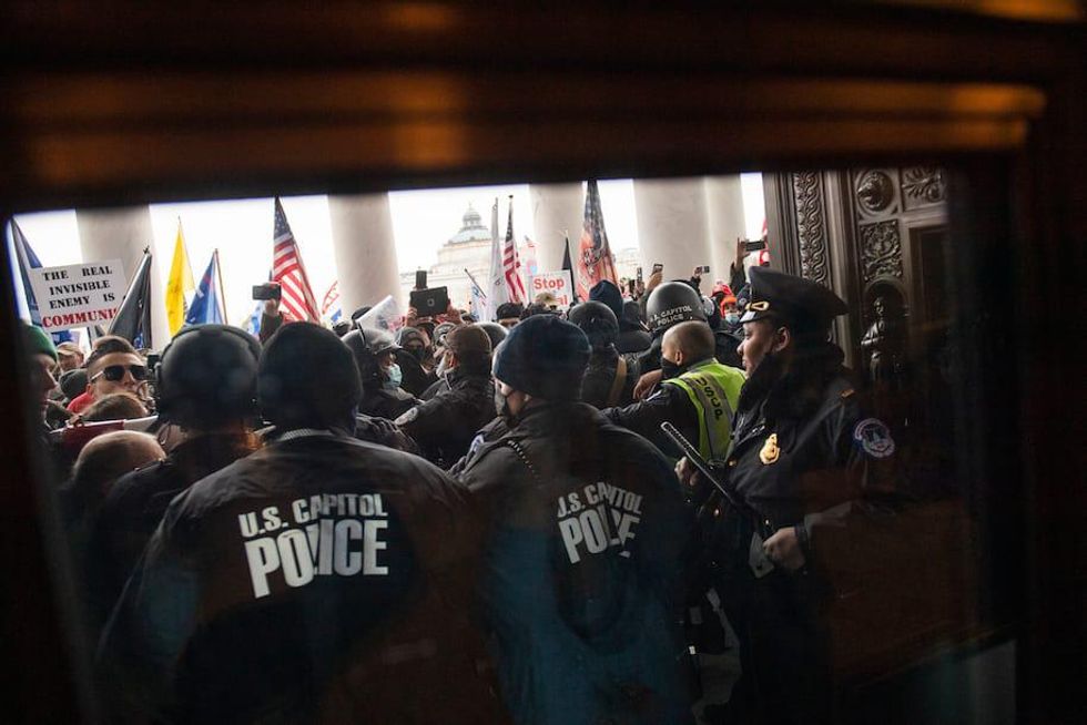 Back in the barricaded room with McConnell aides, one staffer began snapping photos through a window. They could see Trump supporters streaming toward the building — and just four police officers.