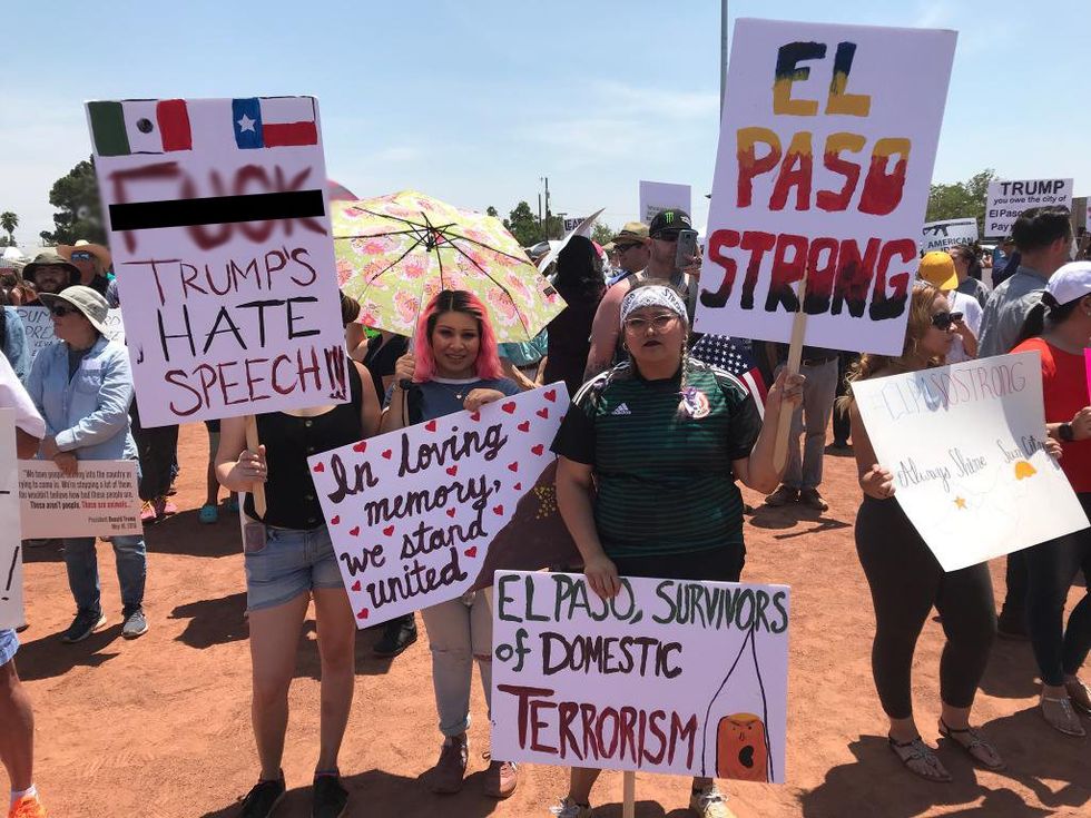 It’s 96 degrees outside and there are hundreds of people. Upon hearing that the death toll has gone up to 23, there was an audible sigh. You can feel the emotions, sadness and anger. We are here, Mr. President. #ElPasoFirme https://t.co/HwUJkbM8qS