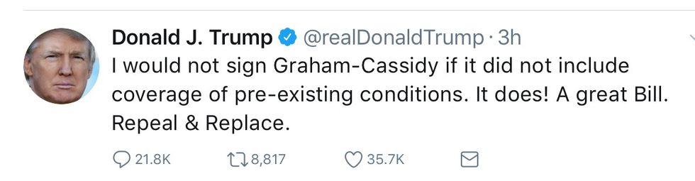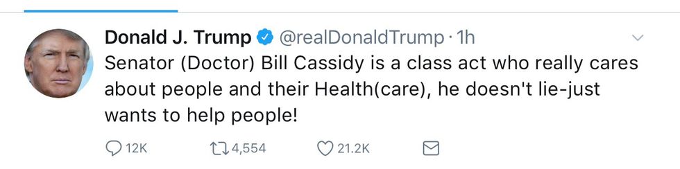 Well, what do you know? The Tweeter in Chief decided to weigh in first on Cassidy-Graham with lie of his own. (See if you can pick it out.)