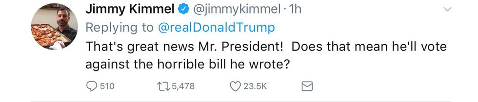 Now, we need to have Jimmy Kimmel's back. Oppose Cassidy-Graham. The newest figures show 32 million people will lose health insurance if it passes. Call your senators at 202-224-3121, ask for him or her by name and tell them to vote no.