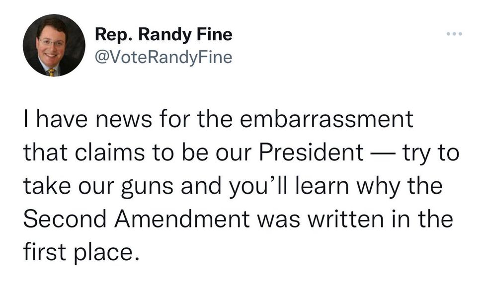 Just another day in Florida with Randy Fine threatening the President of the United States after children and adults were shot & murdered at a school in Texas. https://t.co/tsahGJYuEd