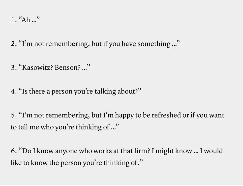 Harris, detailed notes in hand, had no patience for his "I do not recall"s and his long-winded responses to run out the clock. She just calmly and repeatedly demanded an answer to her question: "Did you have any communication with any Russian businessmen or any Russian nationals?" Her mental clarity was terrifying.