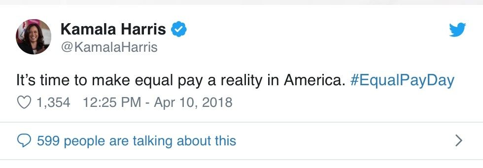 In an essay for Teen Vogue, she wrote, "Our daughters should not grow up believing that their work is worth less than a man's. It's time to end this fundamental unfairness. It's time to make equal pay a reality for all Americans."