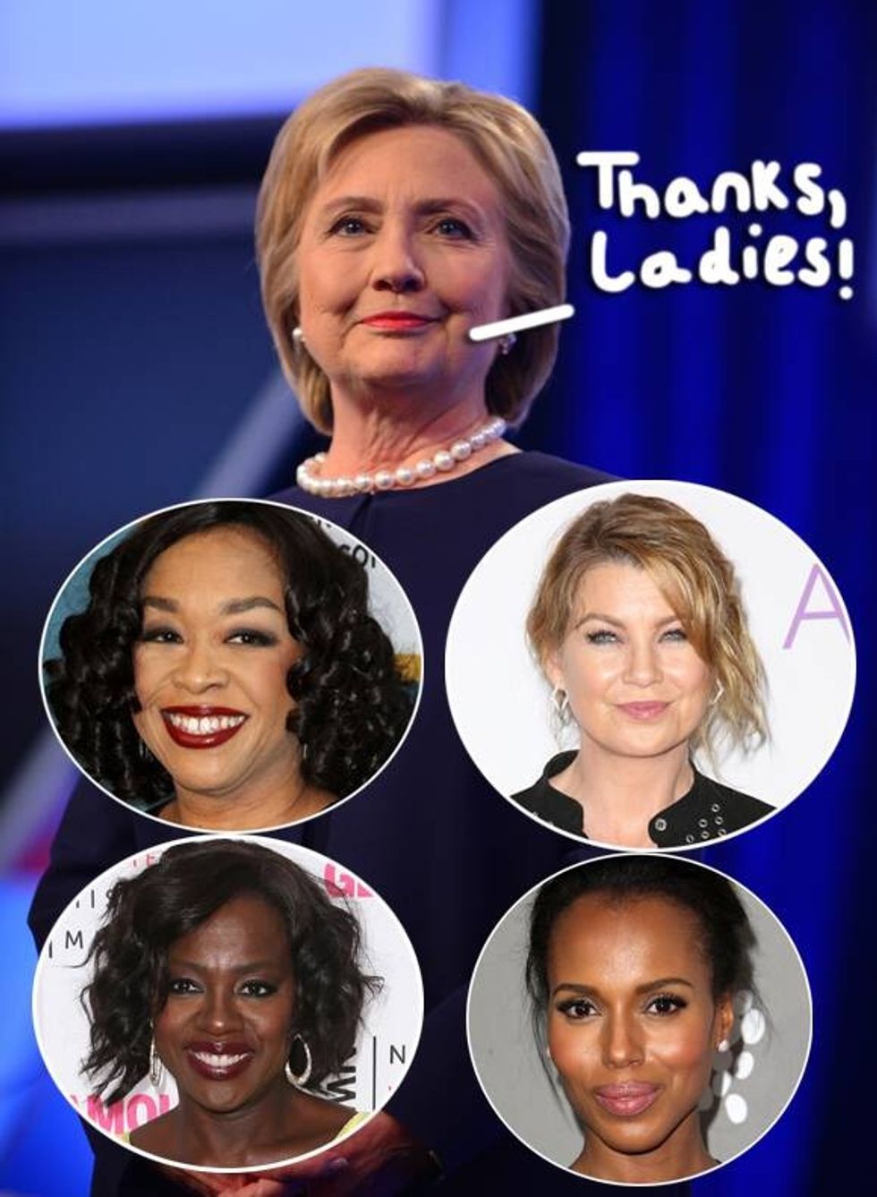Also speaking at the event was Shonda Rhimes. The stars of some of her shows have appeared in ads supporting Hillary.
