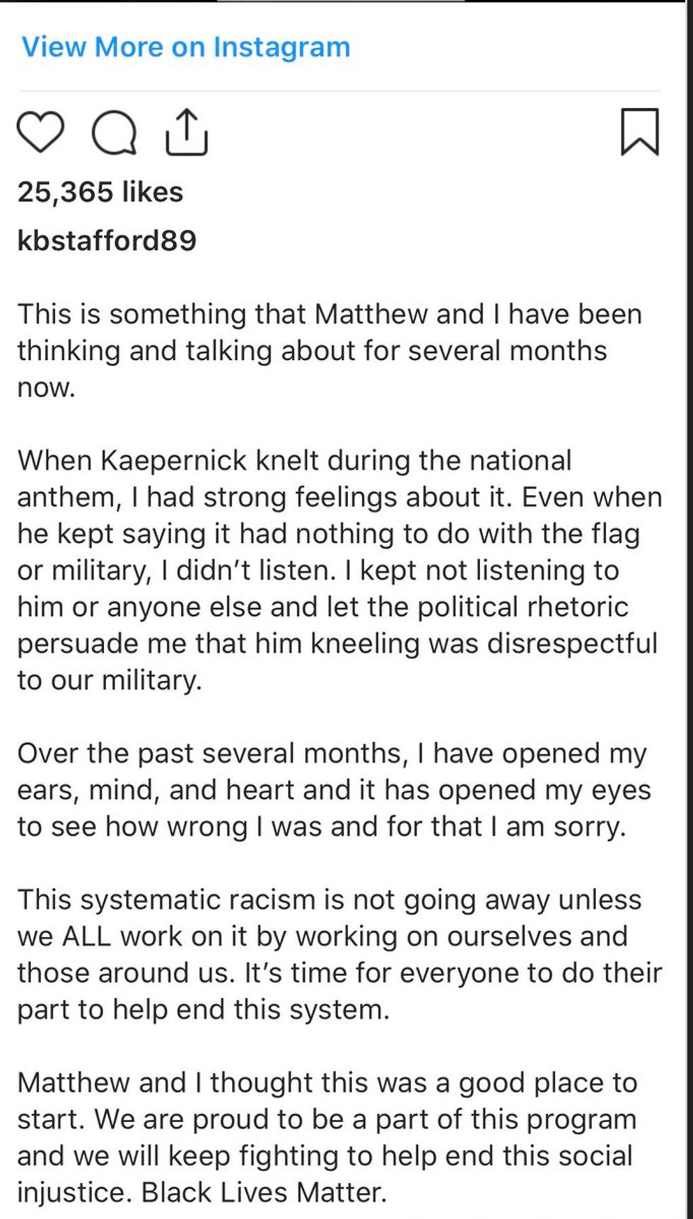 “Matthew and I thought this was a good place to start. We are proud to be a part of this program and we will keep fighting to help end this social injustice. #BlackLivesMatter” https://t.co/6R5zIlxIS7