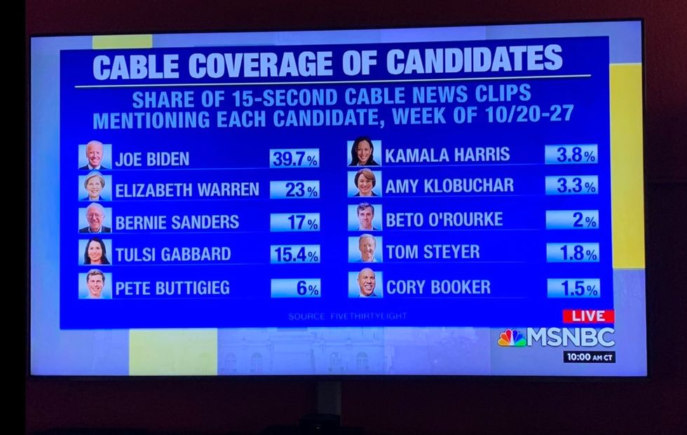 Voices4America Post Script. Does only Klobuchar care that Pete earned a minuscule 8500 votes to become Mayor Pete of a small town? For comparison, Kamala won 3,000,000+ votes & Klobuchar earned 1,566,000 votes to become Senators in StateWide Contests. Who is concerned that Biden called Liz Warren "angry"? Or that cable news coverage is disproportionate by #Gender #Race?