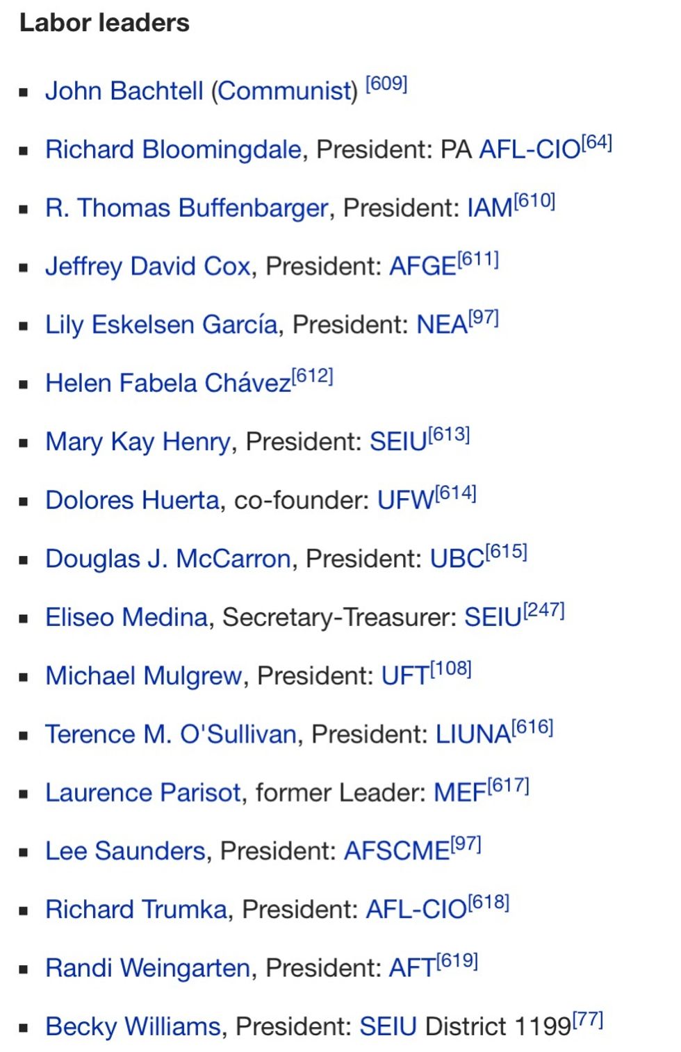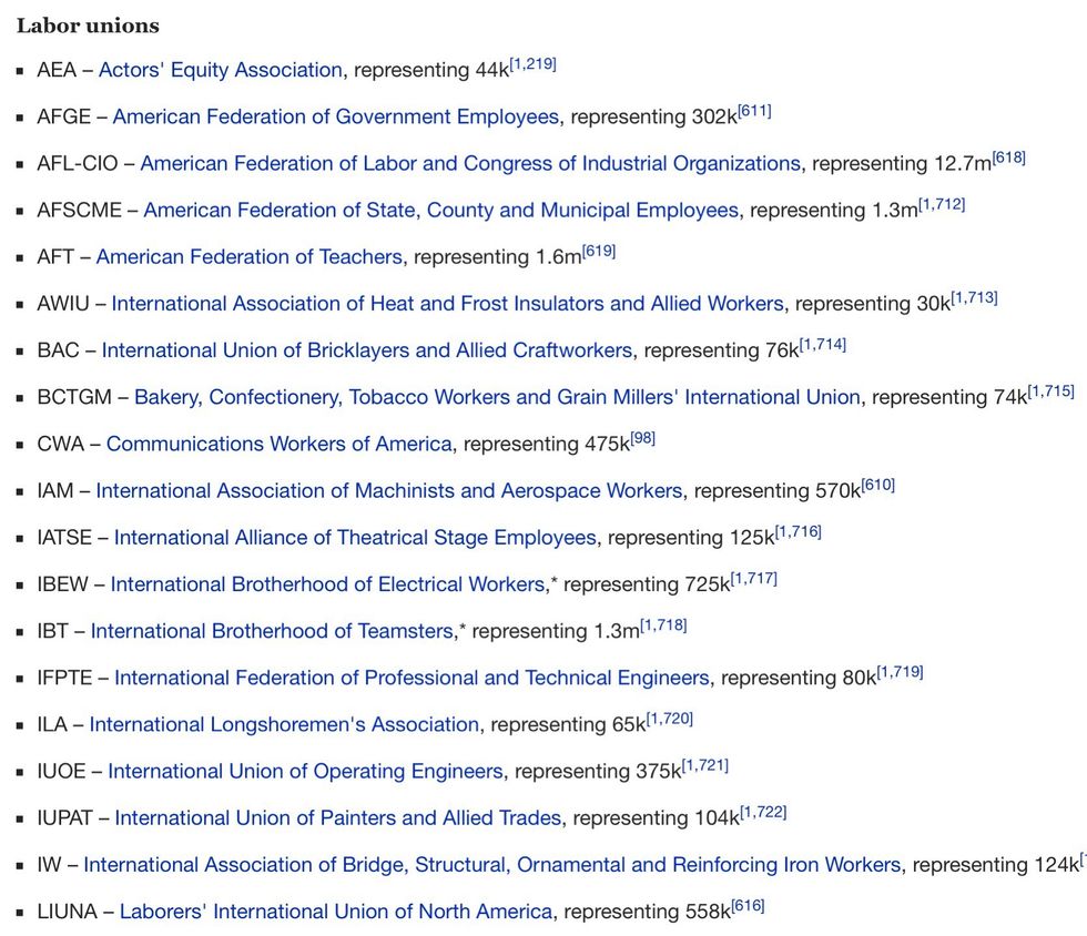 Addendum: Here is a list of some of the unions which have endorsed Hillary.