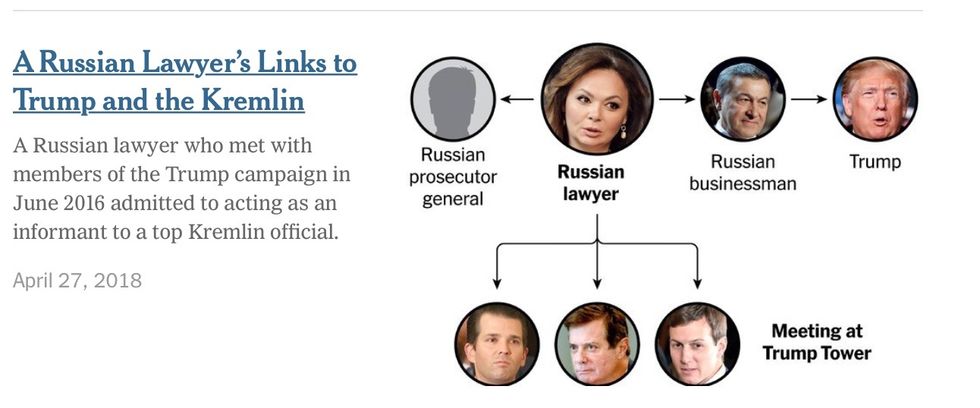 The New York Times published This on April 27, 2018 with the title- Lawyer Who Was Said to Have Dirt on Clinton Had Closer Ties to Kremlin Than She Let On.