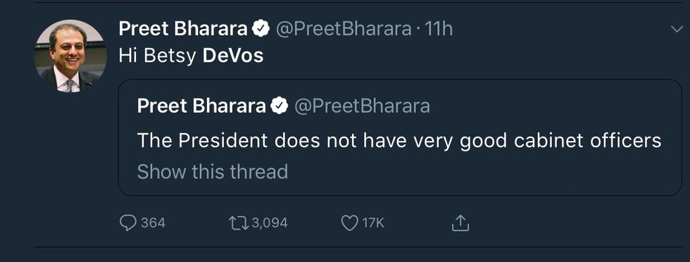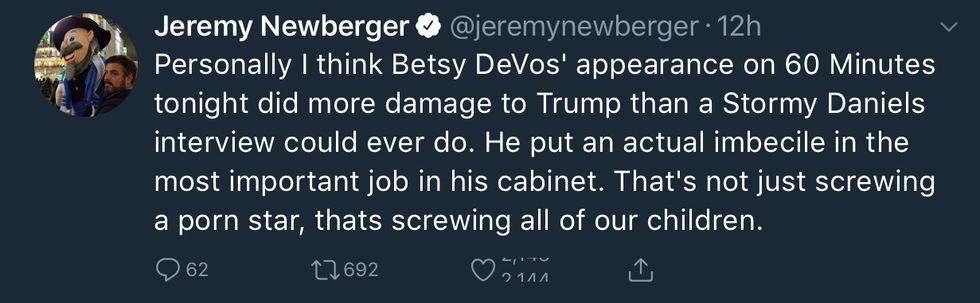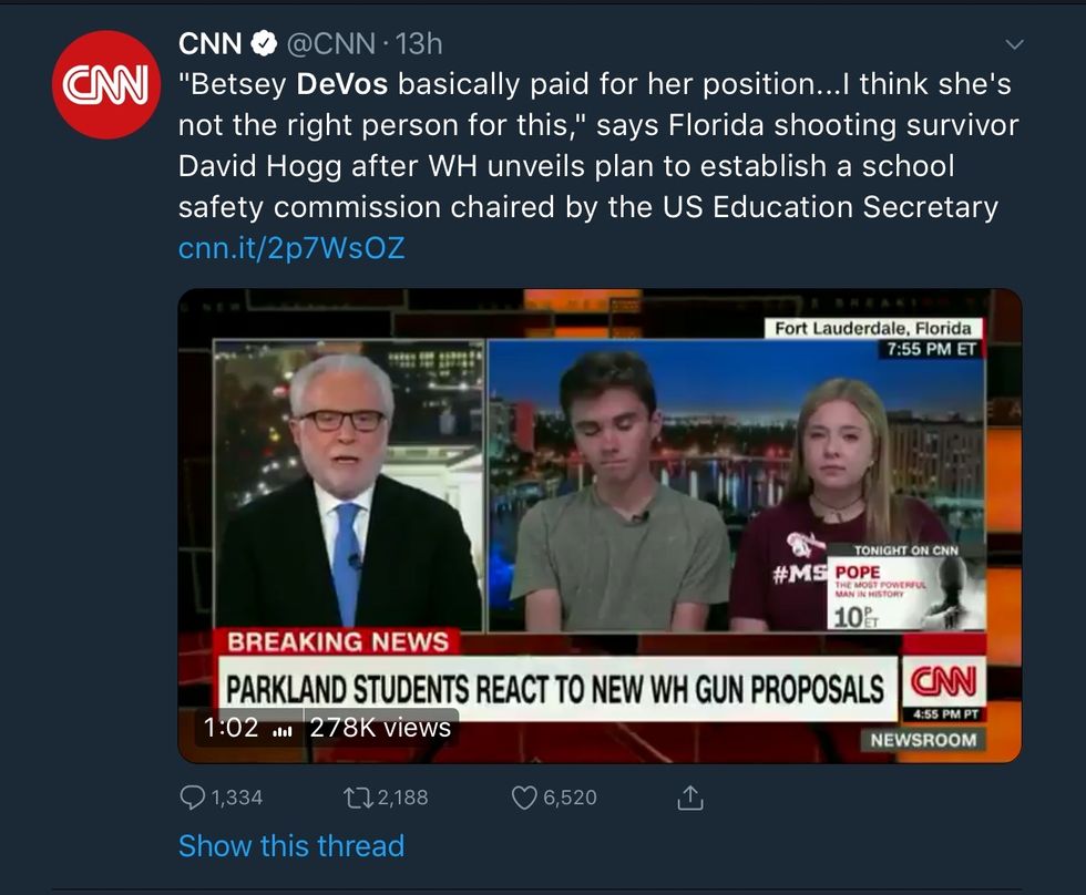 David Hogg, one of the kids from Marjory Stoneman Douglas High School in FL who survived the February 14th Massacre, responded this way after Trump appointed DeVos to head a new school safety commission.