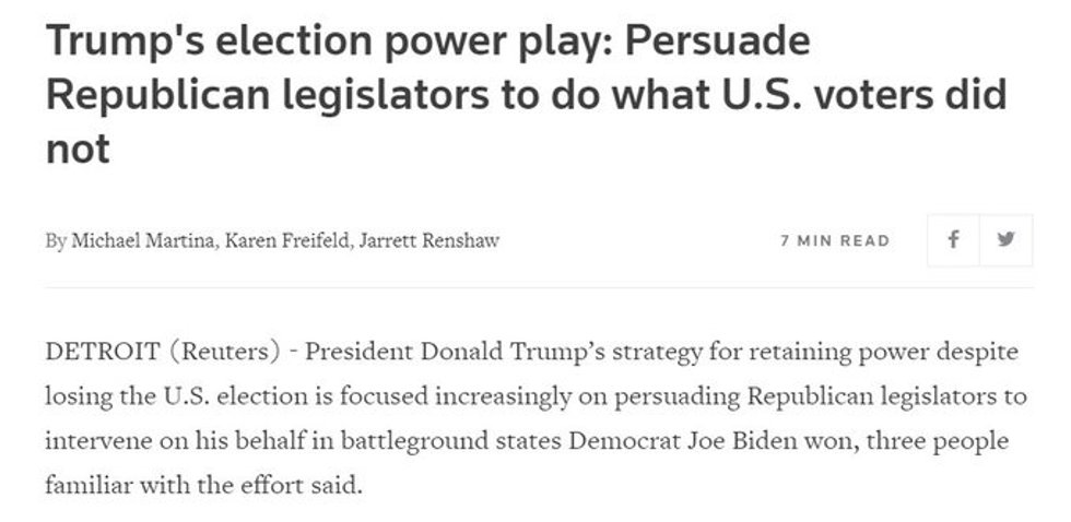 Let me repeat: This is an attempted coup. A COUP. A subversion of democracy & the will of the people. It is not a strategy. Journalists, headline writers, reporters should all be very clear about this dark & disturbing reality instead of using euphemisms. https://t.co/dZm6TEqS5k