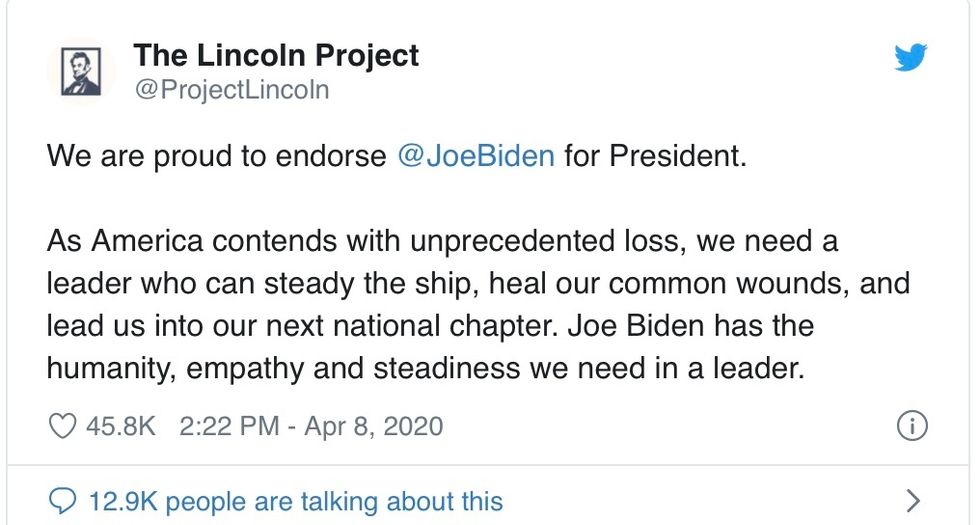The Lincoln Project is a group of Republican never-Trumpers, led by George Conway, Rick Wilson, and Steve Schmidt.