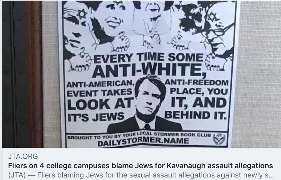Fliers blaming Jews for Kavanaugh assault allegations target Iowa organizations | Jewish Telegraphic Agency.