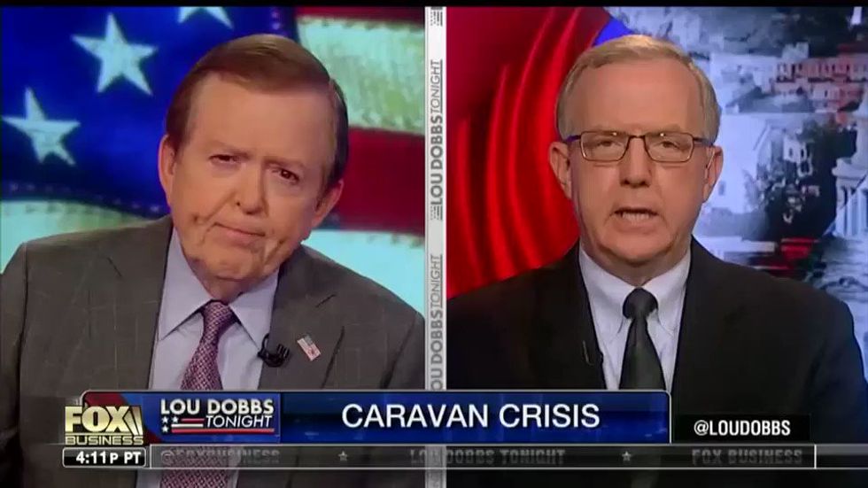 Lou Dobbs' guest Chris Farrell says the "caravan" is being funded/directed by the "Soros-occupied State Department". So, what he's saying is, the caravan is part of some ZOG conspiracy.