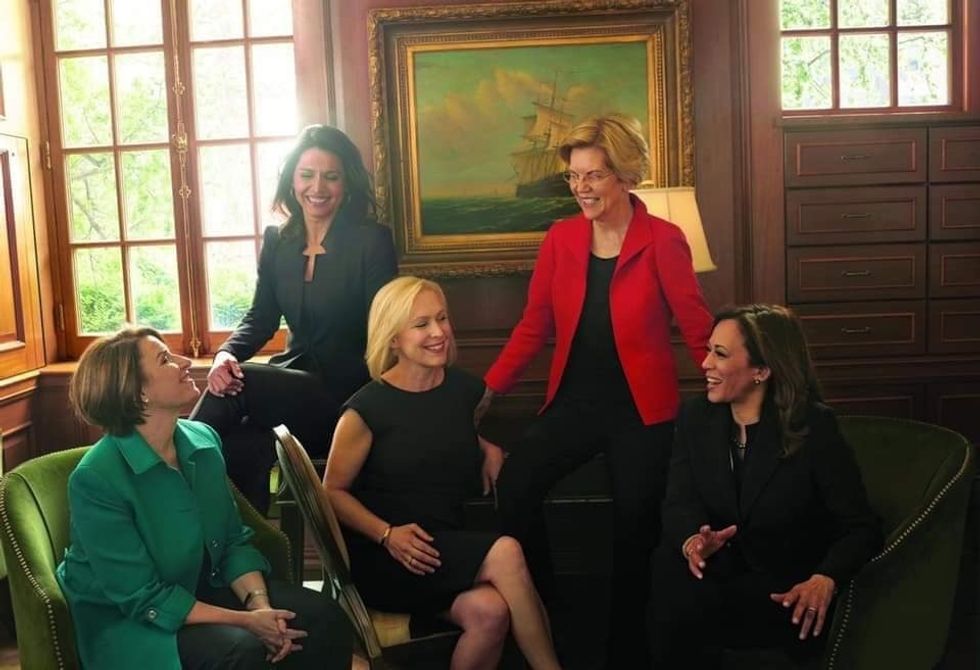 Democrats are reluctant to give President Trump credit for much of anything, but they will happily point out that he has motivated a wave of women to march and tell their #MeToo stories and run for office. The 127 women now in the 116th Congress make up 23 percent of all members. This is progress for sure, but still sort of a bummer when you remember we're more than half the U.S. population. Gillibrand and Klobuchar both praise House Speaker Nancy Pelosi's unique ability to rattle the president. Then there is Ocasio-Cortez, who has become such a force that backing her Green New Deal is practically a litmus test for candidates who want to appeal to the liberal base. Ocasio-Cortez hasn't endorsed anyone in 2020, but she did hand Warren social-media gold when the two women sat down to critique the Game of Thrones finale, declaring themselves #TeamSansa. "I think the reason all of these women ran is because they weren't going to accept a nation where Trump's views of the world would prevail," Gillibrand says.