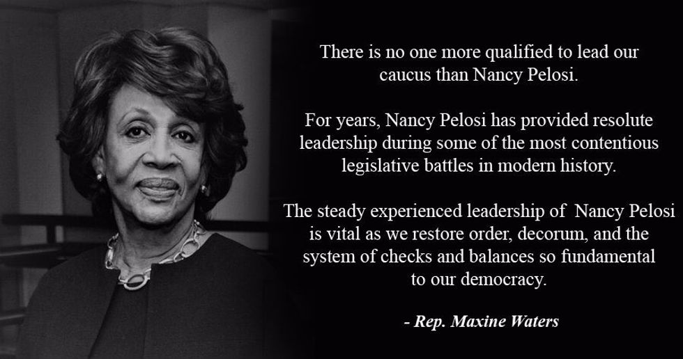.@MaxineWaters endorses #TeamPelosi for Speaker —> “There is no one more qualified to lead our Caucus than Nancy Pelosi.” 💪 https://t.co/mj4cuVbNs7