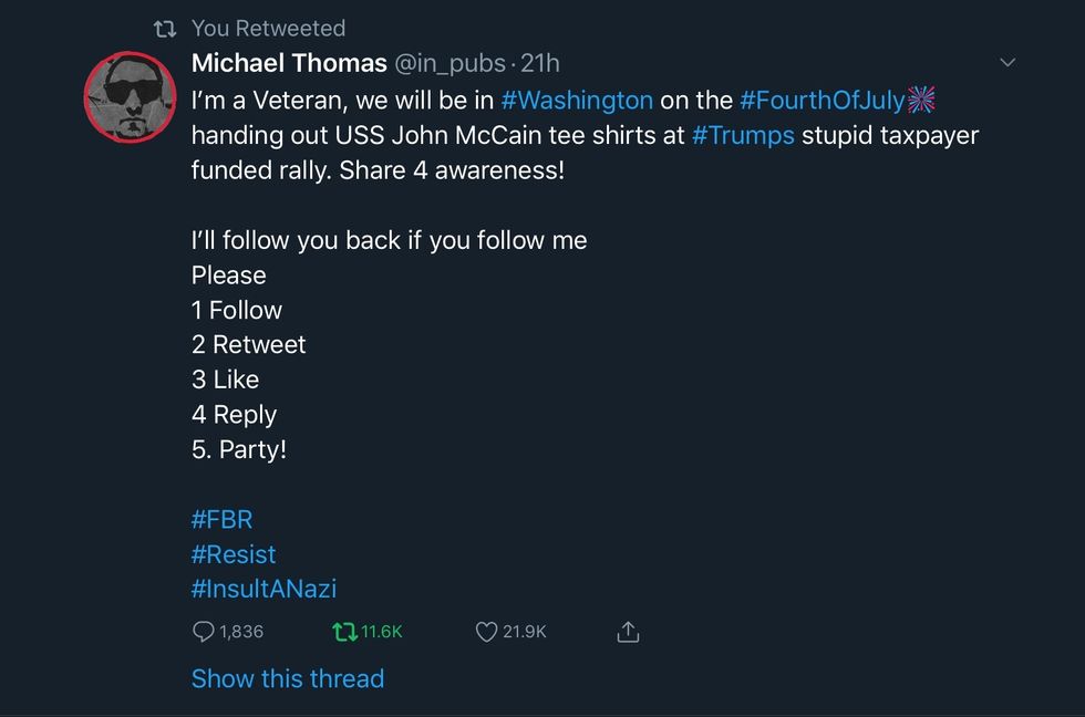 Voices4America Post Script.Trump is set to highjack our Independence Day celebrations. Don't watch it! And pray for rain! Celebrate the 4th with friends & family, & remember what America used to be, & will be again. #BlueWave2020 This post is my take on his disgusting parade. I hope you will share it.