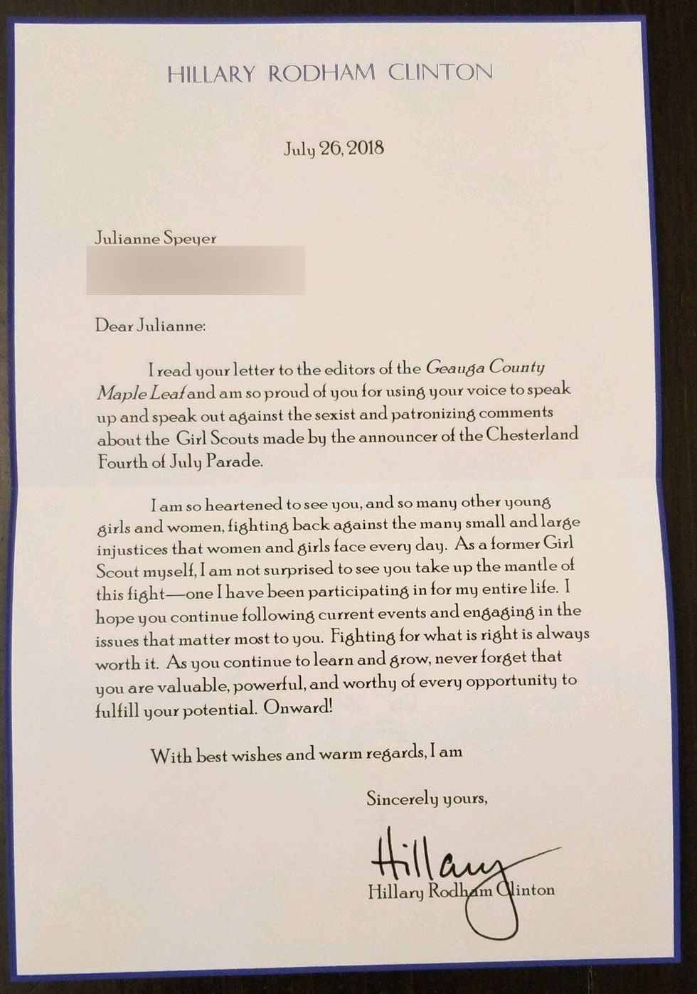 Meanwhile in non-Omarosa news: @HillaryClinton is out here quietly writing to a Girl Scout in Ohio and reminding her, “Fighting for what is right is always worth it....never forget that you are valuable, powerful, and and worthy of every opportunity to fulfill your potential." https://t.co/CV9gsck4eG