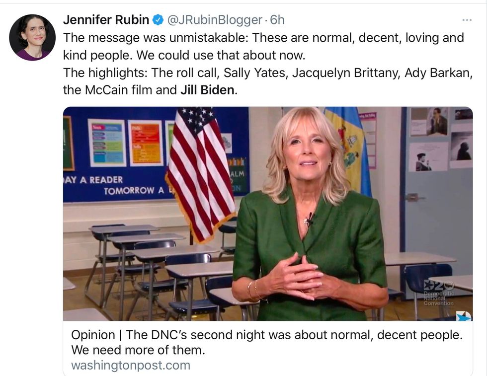 Voices4America Post Script. Here are some reactions on Twitter to #JillBiden #DNC