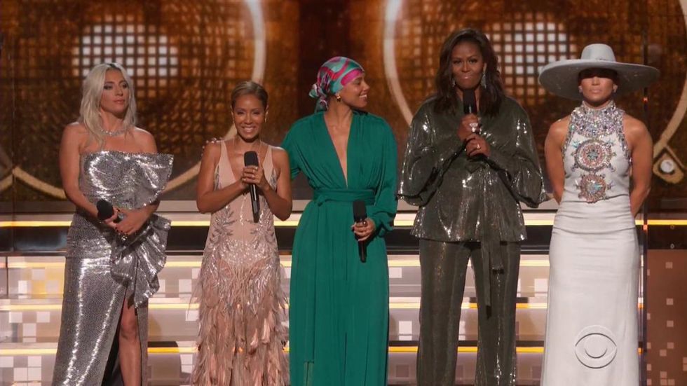 .@MichelleObama makes a surprise appearance at the #GRAMMYs: "Whether we like country or rap or rock, music helps us share ourselves: our dignity and sorrows, our hopes and joys. It allows us to hear one another, to invite each other in" https://t.co/pEHw6h7hdE https://t.co/AE9y2PG6Wy